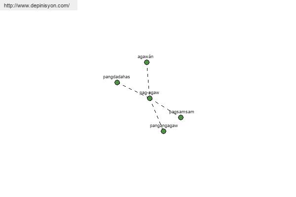 pag-agaw, pag-ayaw, pag-asa, pag-aasawa, paggawâ, pag-gaya, pagkahawa, pag-aayos, pagkagago, pagkaayaw, pagsasagawâ, paggaya, paggagayak, pag-igi, pag-akò, pag-uwî, pag-iisa, pag-ugâ, pag-iwas, pagkágawâ